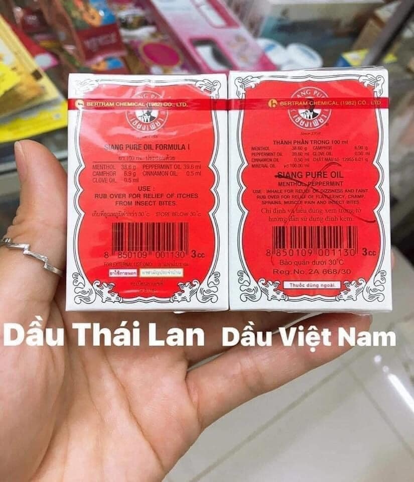 - Dầu gió Thái Lan Siang Pure Oil chuyên trị đau nhức, vết thương do muỗi cắn, cảm lạnh, nghẹt mũi…