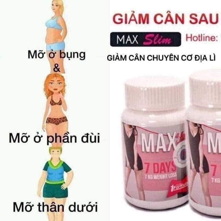 Giảm cân Max Slim sẽ gây chán ăn, đốt mỡ toàn thân nhưng khiến da không chảy sệ và mặt mũi xanh xám như một số thuốc giảm cân thông thường khác. Max Slim đươc chiết xuất từ tự nhiên có chức năng điều chỉnh cơ thể con người, trực tiếp phân hủy mỡ dư thừa và giảm trọng lượng mà không chứa bất cứ thành phần hóa học độc hại nào.