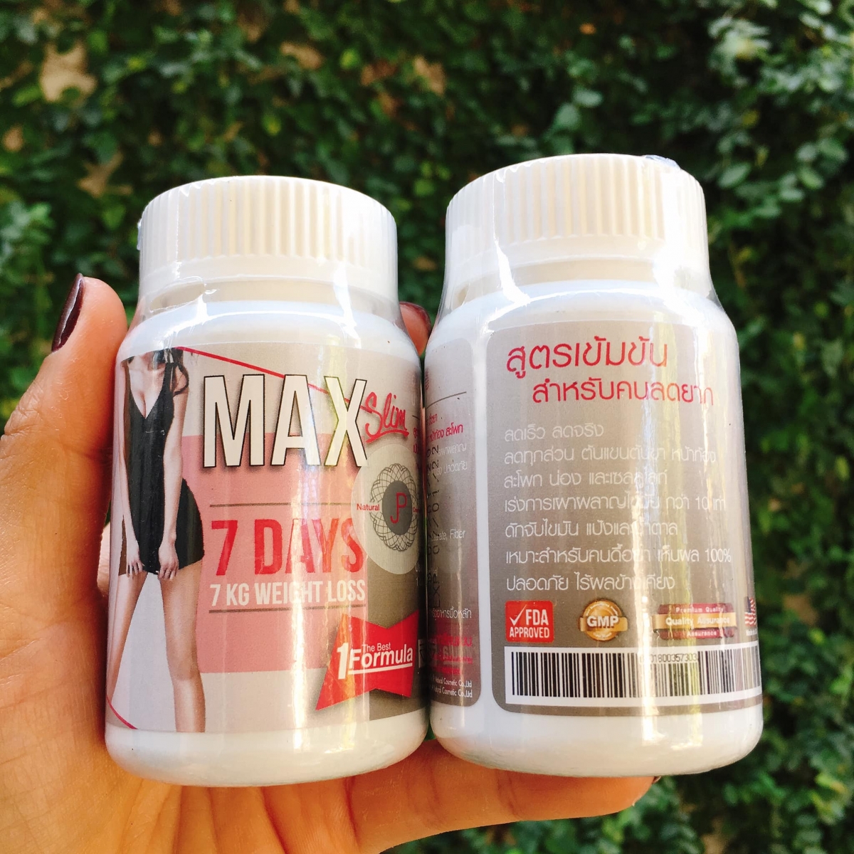MAX SLIM 7DAY HÀNG ĐƯỢC BỘ Y TẾ THÁI LAN CHỨNG NHẬN CÙNG CÁC CHỨNG CHỈ AN TOÀN CHO NGƯỜI SỬ DỤNG . HỘP CÓ ĐÓNG TEM PHẢN QUANG 7 MÀU MÀ HÀNG NHÁI CHƯA SAO CHÉP ĐƯỢC .
