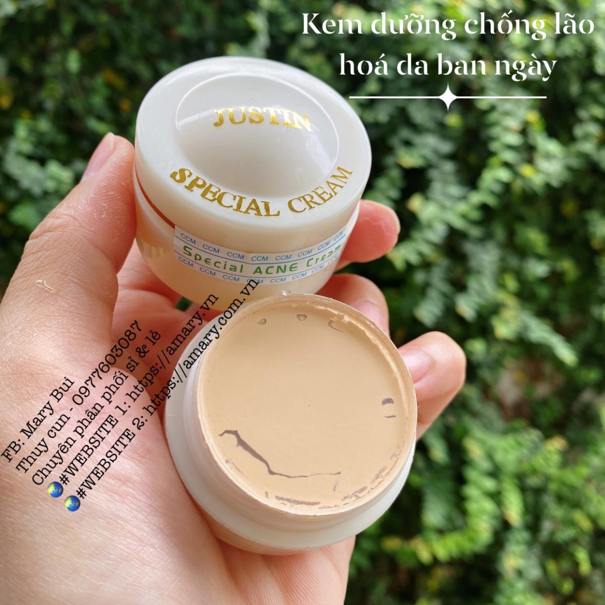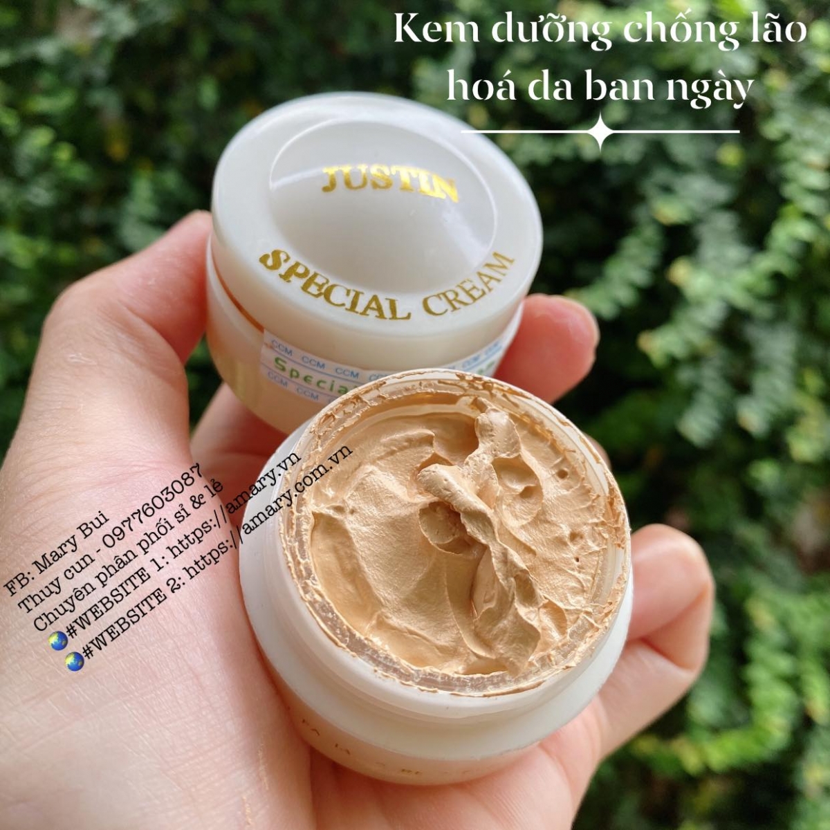 Đây là dòng hàng mỹ phẩm cao cấp đến từ Thái Lan. Kem dưỡng da chống lão hoá giúp làm căng da, tiêu tan vết chân chim, da chảy xệ, chỉ sau 1 tuần sử dụng bạn sẽ cảm nhận rõ rệt sự cải tiến của da, đồng thời cho da trắng hồng tự nhiên. Kem JUSTIN có dưỡng ban ngày & ban đêm luôn ạh. Đây là dạng kem cao cấp thuộc dòng CCM CREAM THÁI LAN mng tự tin sử dụng để có làn da căng bóng mịn màng nhé.