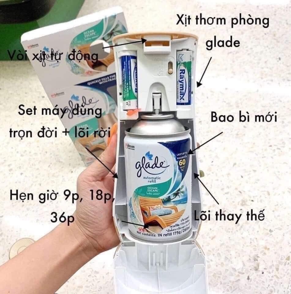 ????#WEBSITE 1: https://amary.vn ????#WEBSITE 2: https://amary.com.vn Hotline: 0977603087 ???? Máy xịt thơm phòng tự động GLADE Sản phẩm tích hợp công nghệ cảm ứng tự động xịt thơm phòng với các chế độ tự chọn: - Tự động cảm ứng (sensor only); - Hẹn giờ: 9 phút xịt 1 lần; 18 phút xịt 1 lần; 36 phút xịt 1 lần. Tổng số: 2.500 lần xịt (tương ứng với khoảng 2-3 tháng sử dụng). Sau đó, máy sẽ cần được thay 1 lọ tinh dầu thơm khác để tiếp tục sử dụng. GLADE có tạo hình như một bình hoa nhỏ cùng với các tính năng thông minh sẽ là vừa là vật trang trí xinh xắn, vừa là vật dụng hữu ích không thể thiếu trong phòng khách, phòng ngủ, tủ quần áo, ... của gia đình bạn. Với GLADE, gia đình bạn sẽ luôn được tận hưởng hương thơm tươi mát và tinh tế của các loài hoa nổi tiếng xứ sở anh đào vs nhiều mùi vị khác nhau Cả set máy (dùng trọn đời) kèm 1 lõi chỉ 420k / cả set quá rẻ. Vì lần sau chỉ thay lõi chứ không thay máy, máy dùng rất bền. ????Có các mùi lavender&vanilla, ocean, white (mùi hoa rất thơm) ????KHÁCH DÙNG HẾT CÓ THỂ MUA LÕI ĐỂ THAY zá chỉ 290k