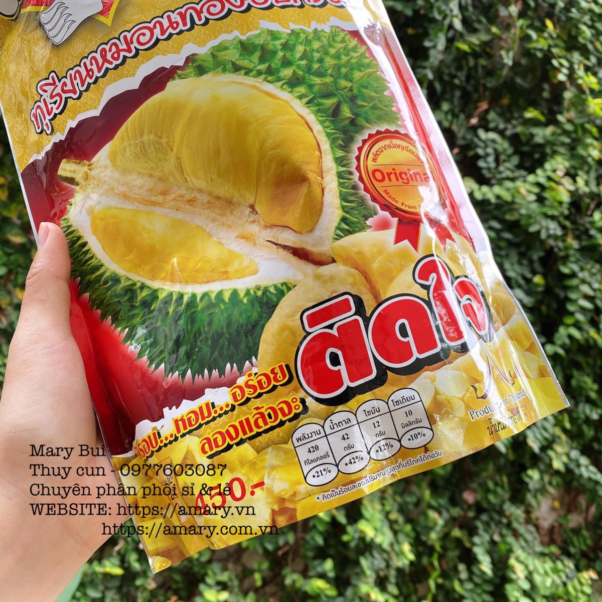 ????????????Đây là loại sầu riêng ngon nhất trong tất cả các loại mà e đã từng ăn , sầu riêng sấy Thái Lan vô số thương hiệu và giá cũng chênh lệch rất nhiều , nhưng cái nào thật sự ngon thì e mới dám quảng cáo nhé , e là chùm đạo sầu riêng đây và sau khi thử nhiều loại e chấm ngay loại này , mùi rất thơm và vị béo y chang như đang ăn muối sầu riêng luôn đó ạ , vì đây sầu riêng nguyên chất sấy ra nha khách , 1 bịch to đùng lunn.