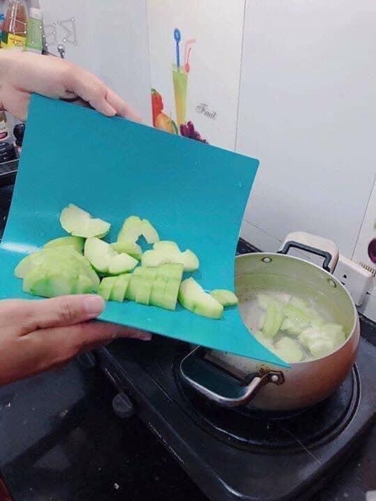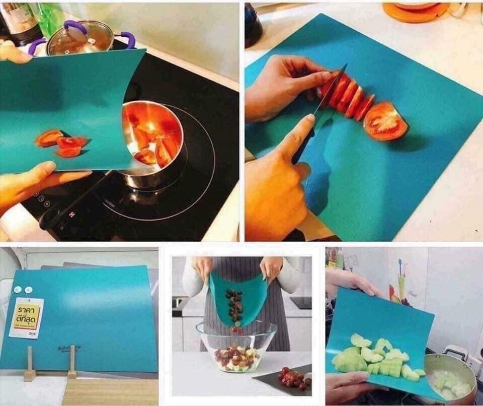 - Set gồm 2 cái như hình, thường dùng để cắt đồ sống và đồ chín riêng biệt - Thớt dẻo siêu mỏng nhẹ, cắt xong chỉ việc cuốn lại đổ vào, ko cần phải hớt hớt vừa mất thời gian vừa dễ rơi vãi nè